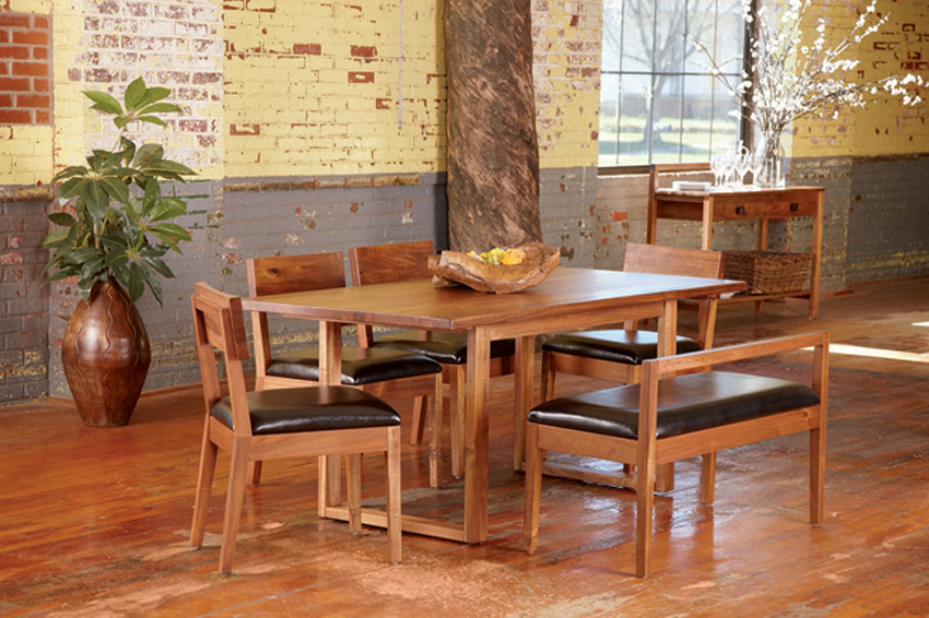This Dining room set is the perfect combination of traditional Japanese design married to contemporary western tastes. Simple and minimalist lines combined with natural all-wood construction, and warm earth tones colors create a look that is appealing, inviting and pleasing to the senses. Dining room table and matching chairs, benches and buffet create an appeal that invites you to come, sit down and join in. And by the way, bring a bottle of Saki and few cups and invite those village friends that live next door to join you